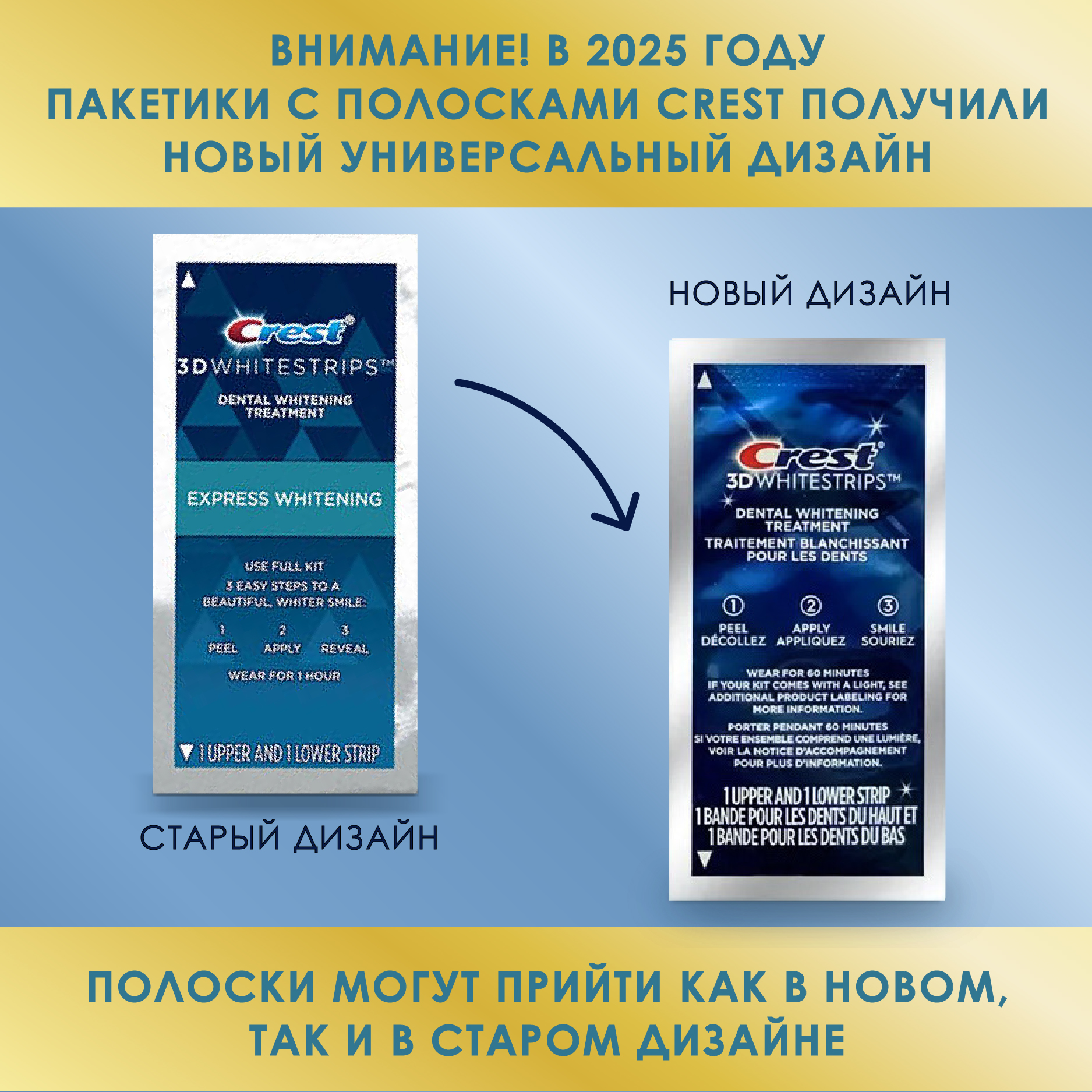Ни одно важное мероприятие не застанет вас врасплох с «Crest 3D Whitestrips 1-Hour Express». Всего 1 час– все, что нужно, чтобы ваша улыбка засияла. Отбеливающие полоски надежно фиксируются за счет применения технологии «NO–SLIP», растягиваются, не скользят и полностью повторяют форму зубов, что позволяет исключить дискомфорт во время их использования. Американская Стоматологическая Ассоциация «ADA» в ряде исследований доказала, что продукт безопасен и эффективен в домашних условиях. Комплект включает 10 отбеливающих полосок, 5 для верхних и 5 для нижних зубов. Курс рассчитан на 5 дней.